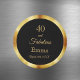 Elegant, classic, and simple 40 and fabulous birthday sticker. Chic classic black background color with a faux gold frame. The text: 40 and fabulous. Templates for her name and a date. Date of birth or the date of the party. Golden letters. Perfect for party favors or as a save the date reminder for your guests.