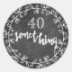 NewParkLane - Stickers, with fun quote '40 Something' in an elegant wreath with fun typography, against a black chalkboard background.