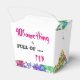 Bought these to fill for party favors for my baby shower. They are a bit small but ended up working out. I was able to fit one handsanizer from BB&B and 6 Hershey kisses inside. Then attached a handmade soap from etsy on the backside. Everyone loved them! They were easy to put together as well with easy to follow instructions. Just as pictured and easy to edit if you need to make changes.