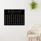 Faux Gold Glitter Calligraphy Seating Find Your Seat people for 320-400 guests (8-10 people at one table). An elegant design in gold and black or any background color you choose. Just click the customize further link, shown under the text personalization area on the right, and choose your custom color background. This sign poster template makes it fast and easy to create stunning additions to your wedding décor. Signs can be decreased, there are many sizes to choose from, as well as options for custom framing and matting.