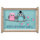 Cute owl couple 40th wedding anniversary serving tray will make a lovely keepsake gift for remembering 40 years of marriage.