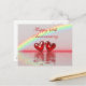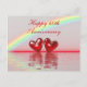 Postcard with my original artwork of two ruby red hearts floating on the water under a rainbow. Customizable text says "Happy 40th Anniversary".