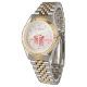 Watch with my original computer artwork of two ruby colored hearts floating on the water under a rainbow with changeable text that says "40 Years".