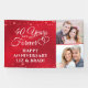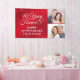 Celebrate a 40th wedding anniversary with this personalized ruby red and white banner sign featuring an elegant gold calligraphy script typography design 40 YEARS INTO FOREVER accented with interlocking linked hearts and confetti and personalized with the couple's names, your custom text and 2 photos. Contact the designer via Zazzle Chat or makeitaboutyoustore@gmail.com if you'd like this design modified or in another color, on another product or would like coordinating items.