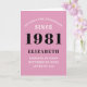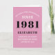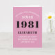 40th Birthday 1981 Pink Black Lady's Personalized Card