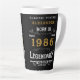 For those born in 1986 and celebrating their 40th birthday we have the ideal birthday latte mug. The black background with a white and gold vintage typography design design is simple and yet elegant with a retro feel. Easily customize the text of this birthday gift using the template provided. More gifts and party supplies available with the "Legendary" design in the store.