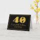 This vintage look and 1920s/1930s era style inspired birthday themed greeting card design features a large art deco look inspired number "40", the message "Happy 40th Birthday,", a custom name, and a border pattern consisting of thin lines on the front. The background of the front is colored black. The inside has a custom birthday greeting message, or could perhaps be cleared and left blank if a message is to be written by hand instead. A customized birthday greeting card like this might be a fun way to send a birthday greeting message to somebody who is celebrating their fortieth birthday. [~Z0000498]
