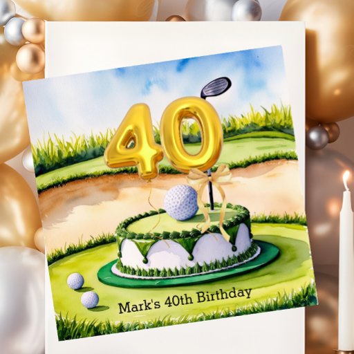 40th birthday birthday party invitation on green with golf ball and tees and number 40