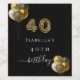 For an elegant 40th birthday party. A black background, decorated with balloons. Number 40 is written with a trendy balloon style font, leopard pattern. Personalize and add a name and a date. The word birthday is written with a modern hand lettered style script with swashes.