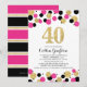 40th Birthday Black Hot Pink Gold Glitter Confetti Invitation