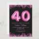 40th Birthday Black Pink Balloons Glitter Party Invitation