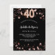 40th birthday black rose gold stars invitation postcard