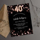 A classic black background, decorated with rose gold stars. Personalize and add a name and party details. The number is written with a balloon style script.