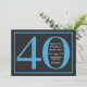 40th Birthday Invitation. Blue and Black Birthday Party Invite with Chalkboard Background. Surprise Birthday. Adult Birthday. Men or Women Bday Bash Party. For further customization, please click the "Customize it" button and use our design tool to modify this template.