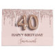 Elegant, classic, glamorous and girly for a 40th birthday party. A blush pink background. Decorated with rose gold, pink drips, paint dripping look. Personalize and add a name. With the text: Happy Birthday. The name is written with a modern dark rose colored hand lettered style script. Number 40 is written with a balloon style font.
