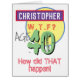 Celebrate a birthday with a personalized card showing name and birthday age. Funny message says "How did THAT happen!". Add your own personal message inside too. 40 years old.