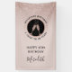 On a background of delicate girly blush pink our vertical 40th Birthday party banner features a sparkling blush glitter ombre overlay for extra party glam. Inside a black and rose gold circle logo, bubbling champagne glasses clink together in a toast to the birthday honoree. You can easily revise the milestone birthday details on the personalization template.