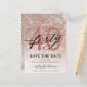 Modern chic girly save the date postcard for 40th birthday. Design featuring champagne sparkly glitter texture, rose gold 40 and calligraphy script forty. Personalize with a name and party details.