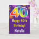 40th Birthday Colorful Rainbow Fireworks Purple Card with personalized name. For further customization, please click the "Customize it" button and use our design tool to modify this template.