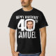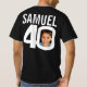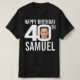 Happy 40th Birthday white text, custom front, and back photo, and name on th dark color of your choice t-shirt. Fun 40th personalized photo in bold black and contrasting white birthday tee design. Personalize this birthday shirt with two photographs of the birthday person in the middle of the number 0 on the front and back ideal for a past and present photo opportunity. Great idea for adding some fun to a milestone fortieth birthday party celebration. Other matching items and colors options are available. Exclusive design by Sarah Trett for www.mylittleeden.com