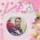 Template for Your photo. White text overlay: Hello 40! A paper plate for a 40th birthday party for him. Matching paper napkins available in our store!