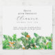 Perfect table decor for a December birthday party. Green holly is the birth flower for that month. It forms a pretty watercolor bottom border on this rustic personalized wine label. The birthday guest of honor's name, age and birthdate are placed above it using elegant calligraphy and typography. All text is editable.
