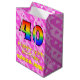 40th Birthday: Fun Pink Hearts Stripes; Rainbow 40 Medium Gift Bag
