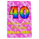 This loving, cheerful, and fun birthday themed giftbag design features a large number "40" with a rainbow spectrum gradient style pattern, along with the message "Happy 40th Birthday,", and a custom recipient name. It also has an upbeat background pattern featuring pink-colored heart shapes and stripes. A happy gift bag like this might be used when giving a gift or present in honor of somebody’s 40th birthday. [~Z0000511]