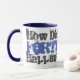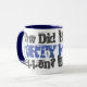40th birthday mug. Forty, 40, years old. How Did Forty Happen? is the bold graphic message on this blue and white mug.gift for a 40th birthday present.