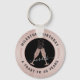 On a delicate blush pink background, our feminine 40th Birthday commemorative key chain features blush glitter ombre overlays on top and bottom for added birthday bling. Inside a black and rose gold circle logo, bubbling champagne glasses touch in a toast to the birthday honoree. Text circled around the logo reads "Milestone Birthday" and "A Toast to 40 Years." You can easily revise the honoree's name and birthday year number on the personalization template. PLEASE NOTE: Make sure to retain the code boxes to keep the swashes intact.