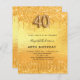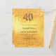 A modern, stylish and glamorous invitation for a 40th birthday party. A faux gold looking background with faux glitter drips, paint dripping look. The name is written with a modern hand lettered style script. Personalize and add your party details. Number 40 is written with a balloon style font, script.