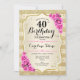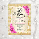 40th Birthday - Gold Stripes Pink Roses Invitation