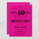 40th Birthday Invitation Black and Hot Pink