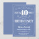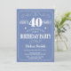 40th Birthday Invitation Blue and White