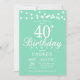 You can pick to download your 40th Birthday Invitation Mint Green from 4 file types: PNG, JPG, Standard PDF, and Print PDF. These 4 file formats have been selected so they cover all your inviting needs. PNG and JPG are great for sending your invitation digitally and PDF and Print PDF are great if you want to print your invitation yourself.