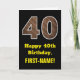 40th Birthday: Name, Faux Wood Grain Pattern "40" Card