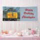 What a unique banner for a 40th or 45th Birthday Party (or any year). It is decorated with our original photograph of a yellow railroad train engine with red text. You can personalize three additional lines of red text of your choosing - suitable for any name, age. Select Indoor or Outdoor material. Original photograph by Marcia Socolik. All Rights Reserved © 2016 Alan & Marcia Socolik.