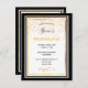 An elegant birthday party invitation card for a 40th birthday for both men and women. Templates for your information. Black and faux gold frames and golden confetti rain. Elegant white background, black and golden letters. The name is written with a modern hand lettered style script.