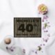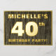 The front of this bold fortieth birthday celebration/party foil invitation card features a custom name, a large number “40th”, the message “BIRTHDAY PARTY!”, and a border, all in foil. There is a rustic, yet sophisticated, faux wood grain appearance inspired pattern for the background of the front. The back features personalized details about the event, such as the date, time, location/venue, and any other relevant information. Customized invitations like these might be used to invite attendees/guests to a birthday gathering/party being held in celebration of somebody’s 40th birthday. [~Z0000598]