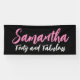 Birthday banner in a pretty and sophisticated design. Text is fully customizable. Suitable for 40th birthday party or any other occasion. Pink and white font against a black background.