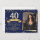 40th Birthday Party Navy Blue Gold Glitter Invitation