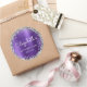 These chic 40th (or any year) birthday stickers feature a purple brushed metal background with a glam silver glitter border. Personalize them with the guest of honor's name in white handwriting script, along with her birthday and date in sans serif font.