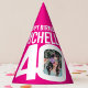 Bold add your own photo and name party hat. Ideal for a special 40th birthday party celebration. Bright hot pink and white design. Other matching birthday items and color options are available. Original graphic art and design by www.mylittleeden.com