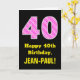 40th Birthday: Pink Stripes and Hearts "40" + Name Card