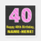 40th Birthday: Pink Stripes and Hearts "40" + Name Napkins