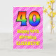 40th Birthday: Pink Stripes & Hearts, Rainbow # 40 Card