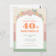 Bring a touch of floral elegance to your fortieth birthday with this retro chic design. Pastel colors of pink and sage green bring a cute aesthetic to the modern stripe background. Personalize it with your name and all of the event details: "Join us to celebrate (Name)'s 40th birthday!"