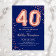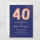 40th Birthday - Rose Gold Balloons Navy Invitation