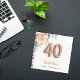 For an elegant and feminine 40th birthday party. A chic white background. Decorated with a rose gold and blush pink watercolored rose flower, floral, green eucalyptus leaves, sprigs, greenery and faux gold sprigs. Personalize and a name. Black and golden letters. The name is written with a modern hand lettered style script. Number 40 is written with a golden balloon style font. Can be used as a guest book or for planning the party.