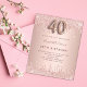 A modern, stylish and glamorous invitation for a 40th birthday party. A rose gold background with drips, paint drip look. The name is written with a modern dark rose gold colored hand lettered style script. Personalize and add your party details. Number 40 is written with a balloon style font, script.
